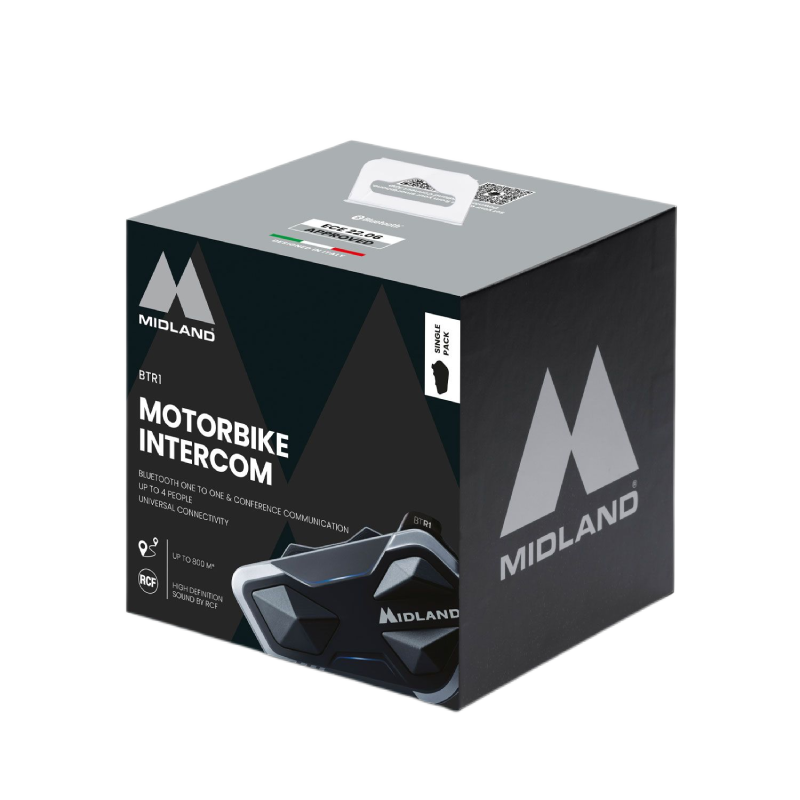Le Midland BTR1 redéfinit la communication entre motards grâce à son interface intuitive et performante. intercom moto MidlandConçu pour les trajets conducteur-passager comme pour les balades en groupe, il permet un mode conférence jusqu’à 4 personnes dans un rayon de 800 mètres.